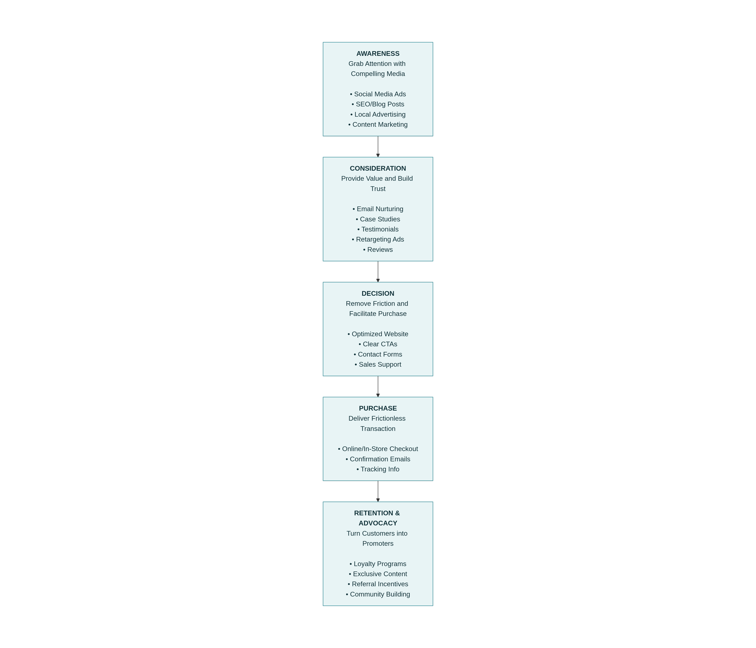 Morrison Media keeps customers engaged through loyalty programs, exclusive content, personalized offers, and community-building initiatives. Satisfied customers become your best salespeople, referring friends and leaving positive reviews that feed the awareness stage of new prospects' journeys.