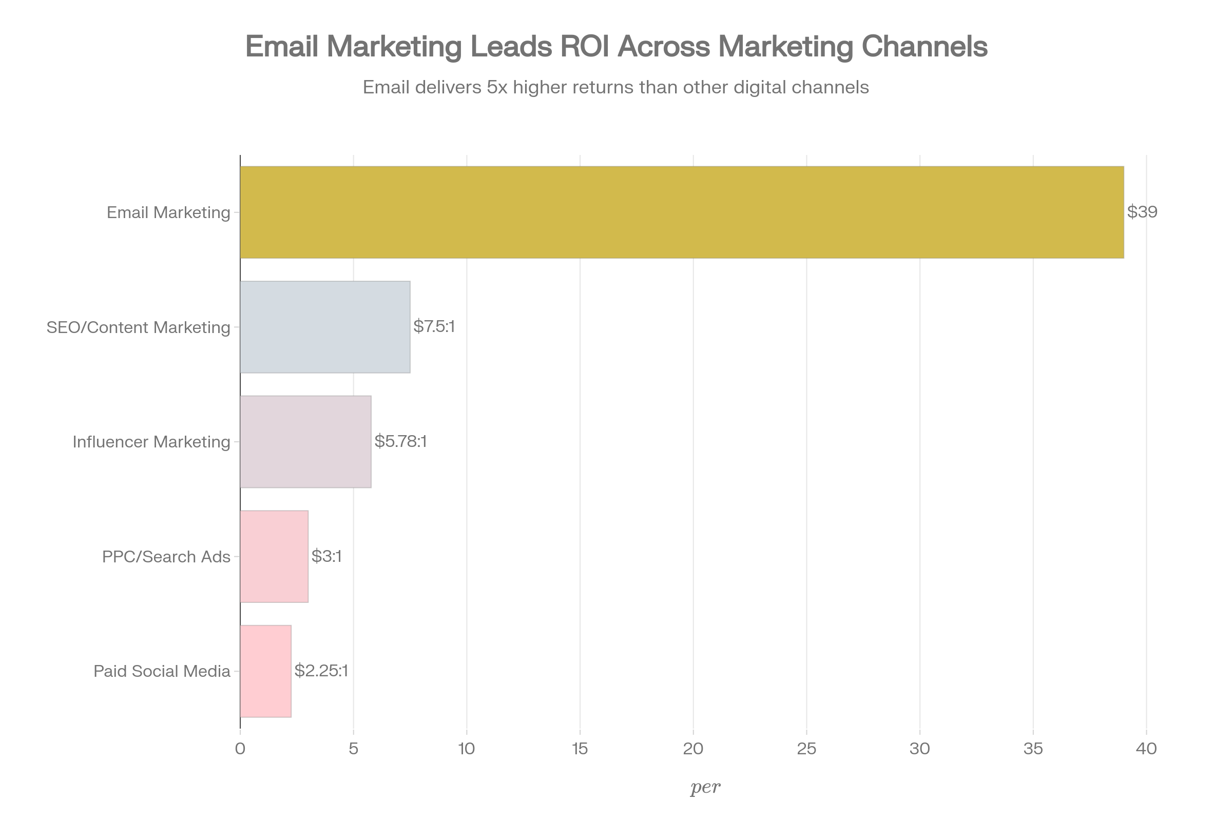 Email marketing delivers $36-42 per $1 spent—the highest ROI of any marketing channel—because it reaches people already familiar with you. PPC advertising delivers 2:1 to 4:1 ROI by capturing high-intent searchers. SEO and content marketing generate 5:1 to 10:1 ROI through long-term organic growth. But when these channels work together as part of a unified strategy, their combined impact exceeds the sum of their parts.